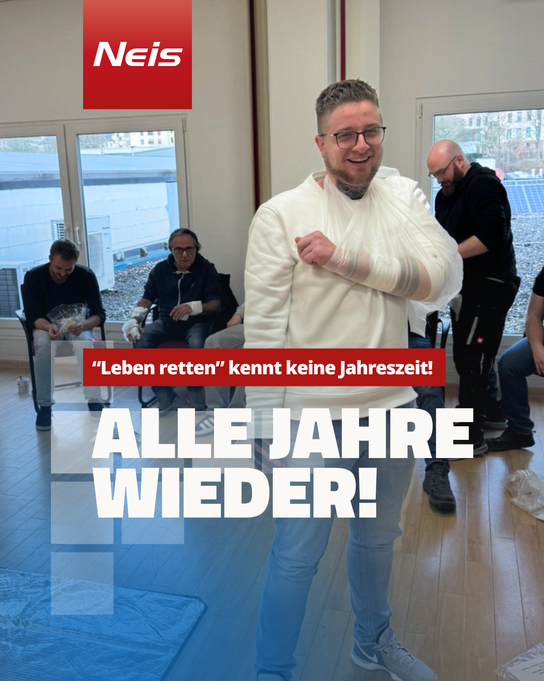Und bei Neis soll das auch wirklich jeder können. Alle zwei Jahre schicken wir unser gesamtes Team zum Erste-Hilfe-Kurs. Dieses Mal kurz vor Weihnachten – denn Leben retten kennt keine